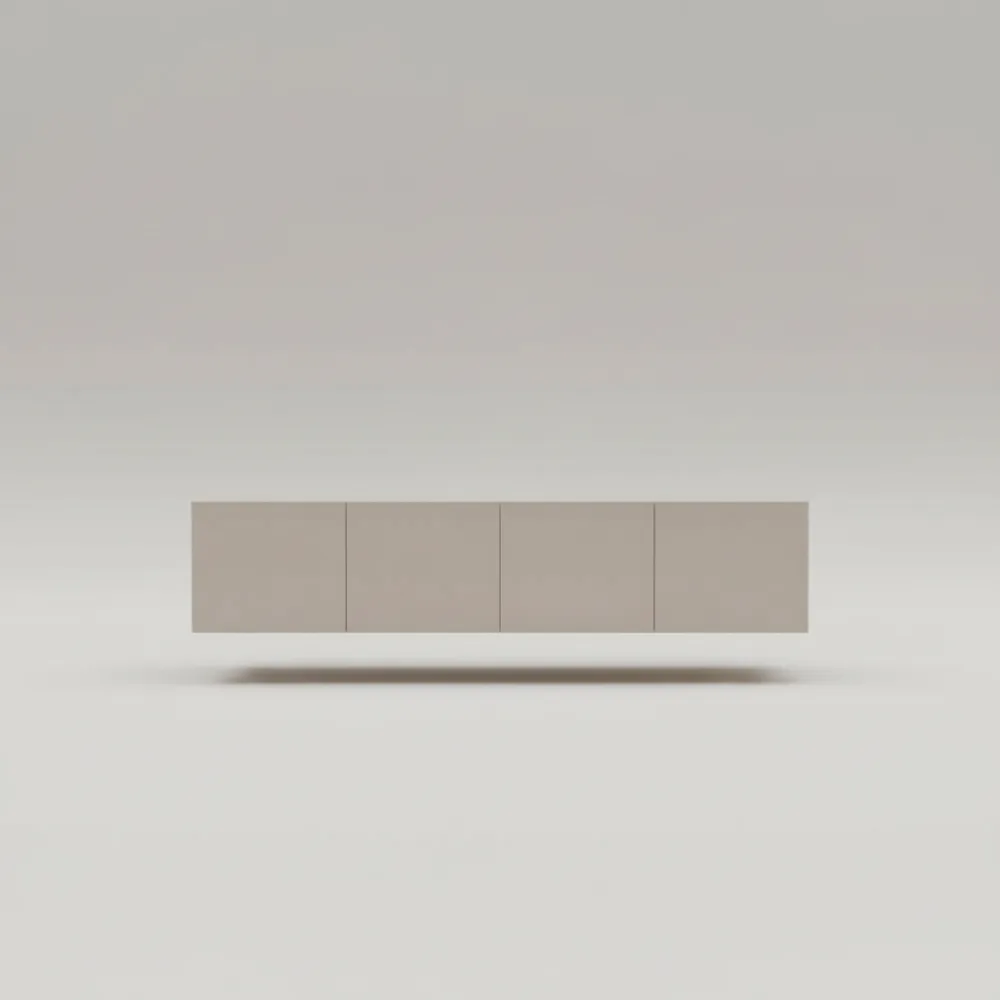 Vous découvrirez avec ce modèle suspendu Nexa une esthétique résolument contemporaine, caractérisée par des lignes droites et épurées. Sa finition beige clair uniforme, douce et mate, s'intègre harmonieusement dans les intérieurs modernes et apaisants. Imaginez votre téléviseur placé au-dessus de cet élégant meuble flottant : l'ensemble créera une atmosphère lumineuse et aérée dans votre pièce de vie. Les quatre portes sans poignées renforcent ce parti pris minimaliste, éliminant toute superfluité visuelle.