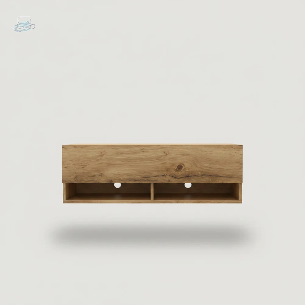 Le meuble TV suspendu Selsey Wander mise sur l'équilibre parfait entre design minimaliste et fonctionnalité avec ses 100 cm de largeur et sa finition chêne Wotan élégante. Fabriqué en panneaux de particules mélaminés, il offre quatre compartiments de rangement astucieux (deux ouverts, deux fermés) et un effet flottant qui libère visuellement votre espace. Parfait si vous recherchez une solution compacte pour écrans jusqu'à 40 pouces dans un petit salon, une chambre ou un studio, sans exploser votre budget.
