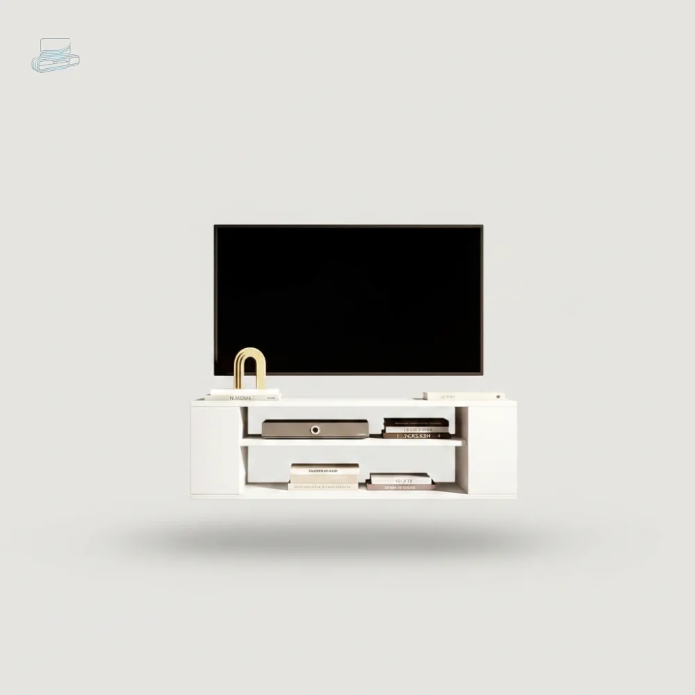 Les lignes droites et nettes de ce modèle créent une harmonie visuelle apaisante dans votre intérieur. Vous découvrirez comment ce meuble de télévision suspendu peut servir de point d'ancrage décoratif autour duquel organiser le reste de votre aménagement. Sa neutralité vous offre une liberté totale pour exprimer votre personnalité à travers les objets que vous disposerez dans ses compartiments et autour de lui.